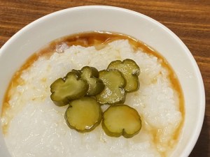 第一天上學的早晨,天還沒亮,媽媽就早早起來,打開瓦斯爐煮了一鍋熱呼呼的稀飯。稀飯冒著白煙,帶著淡淡的米香,她從罐子裡拿出一點醬瓜,輕輕地放在小碟子裡,還貼心地煎了一顆蛋。「阿津,快來吃早餐,吃飽了才有精神上課。」媽媽催促著,語氣雖然急促,卻滿是關心。